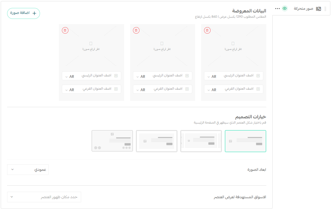 4. حدّد الأسواق المستهدفة لعرض العنصر, إن كنت تفضل اظهاره في كل الاسواق أو اسواق محدده.
