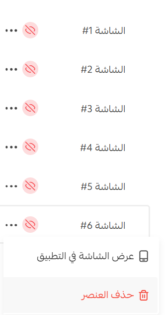 يمكنك إضافة حتى 6 شاشات، مع إمكانية حذف أي شاشة بضغط (...) أو اخفائها من التطبيق بالضغط (