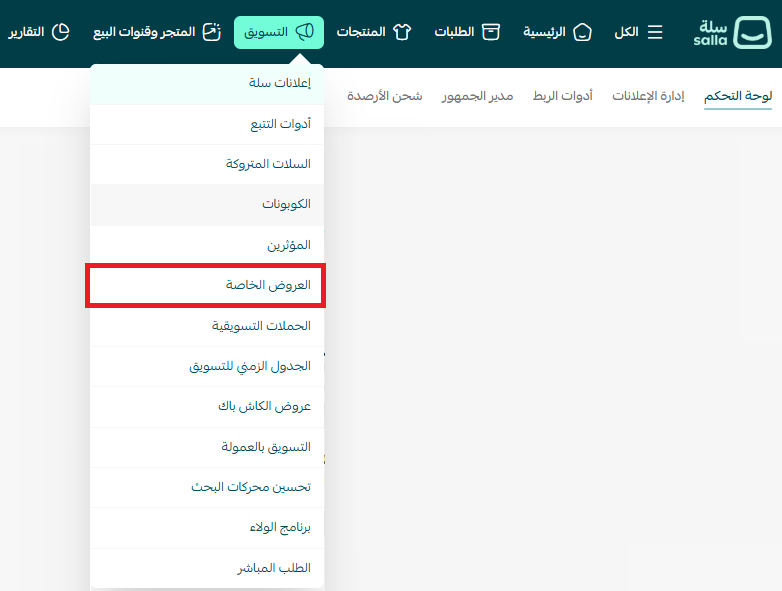 من القائمة الرئيسية، اضغط (التسويق) ثم اضغط (العروض الخاصة).