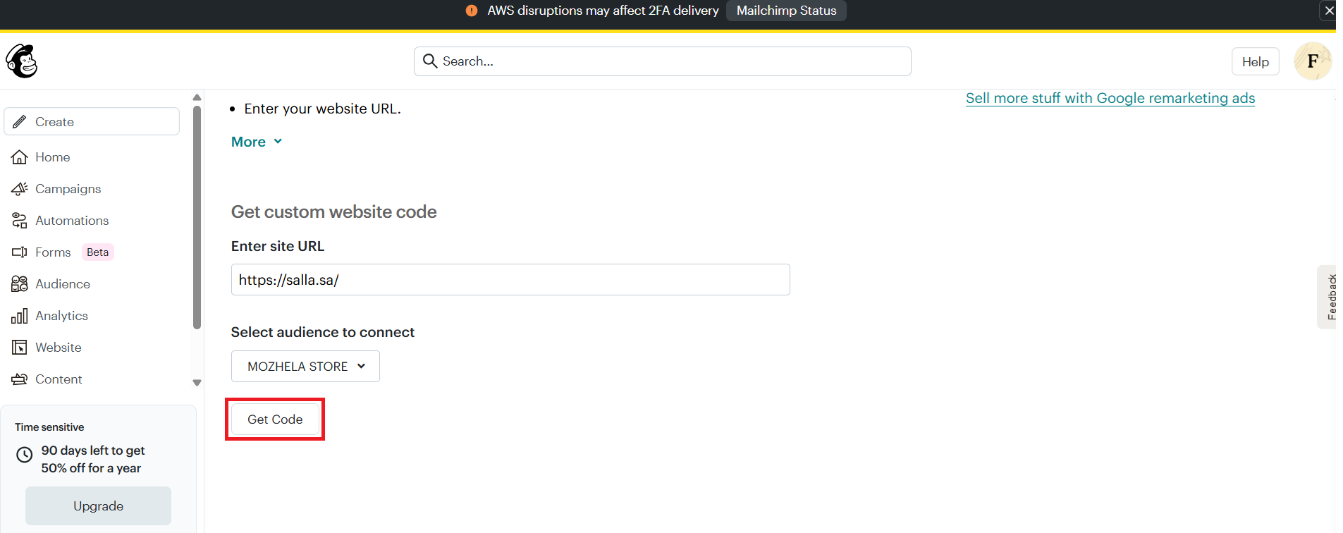 👣 خطوات ربط متجرك على سلة مع حسابك على Mailchimp: