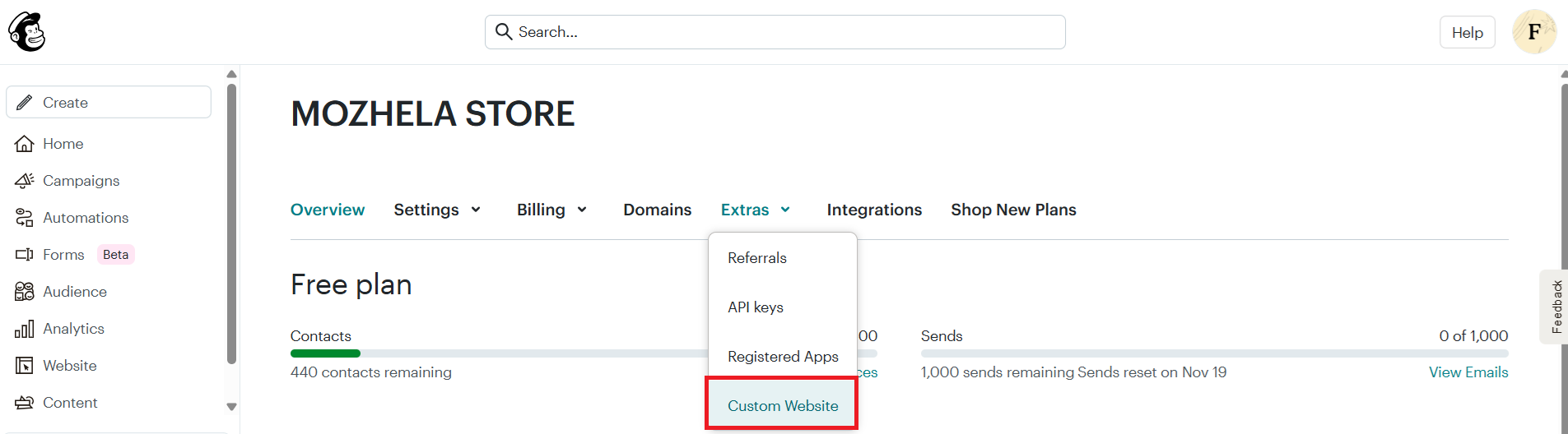 المرحلة الثانية. تثبيت وتفعيل تطبيق Mailchimp