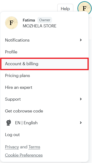 1. من حسابك على Mailchimp، من قائمة حساب المستخدم، اضغط (Account & billing).