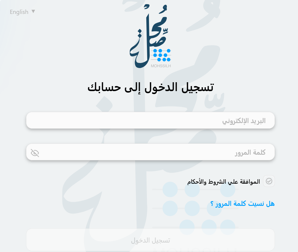 1. سجل دخولك إلى منصة محصلة ببيانات تسجيل الدخول المرسلة إلى بريدك الإلكتروني.