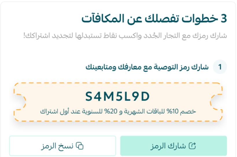 2. كل تاجر جديد يستخدم رمزك عند الاشتراك، تضاف نقاط في رصيدك.