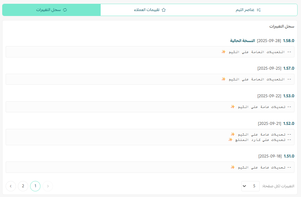 من تبويب سجل تغييرات القالب يمكنك مشاهدة سجل تحديثات الثيم.