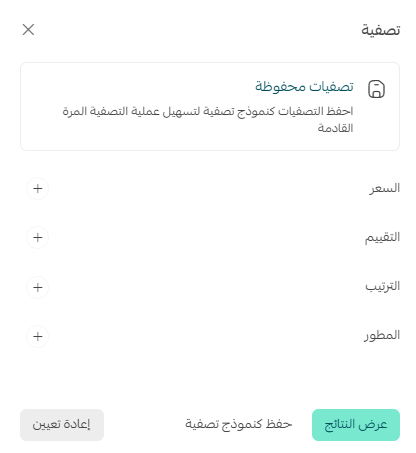 خصص عوامل التصفية بما يناسبك، اضغط (عرض النتائج).