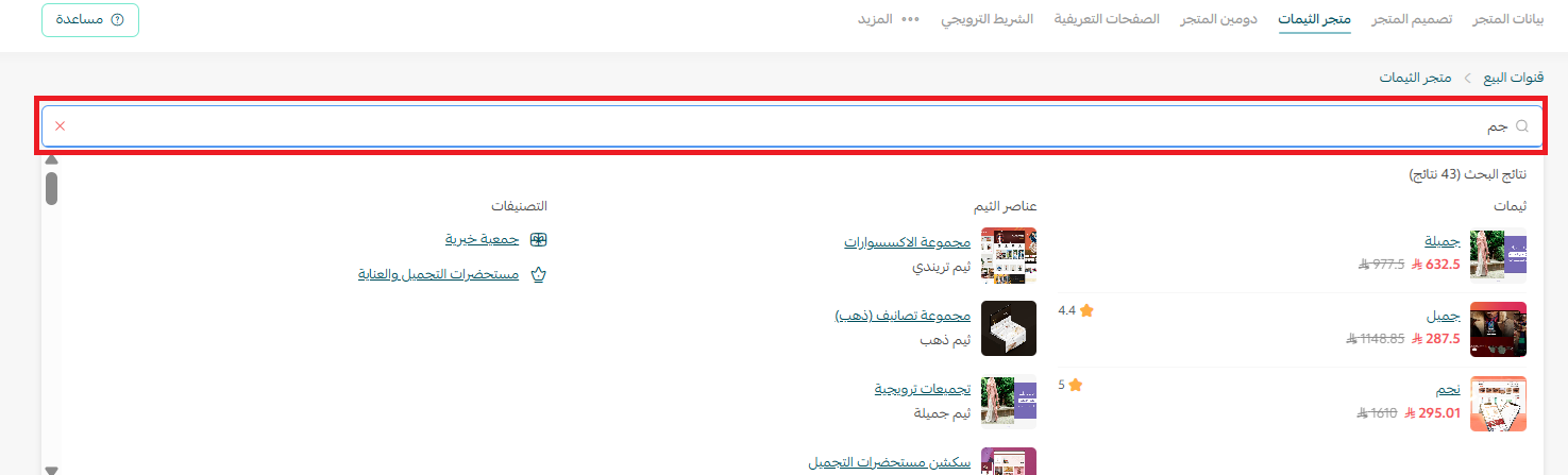 - أقسام متجر الثيمات