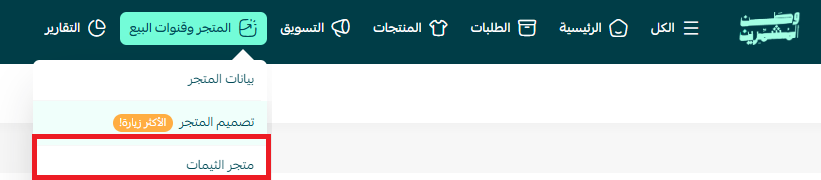 من شريط القوائم الرئيسية، اضغط (المتجر وقنوات البيع) ثم اضغط (متجر الثيمات).