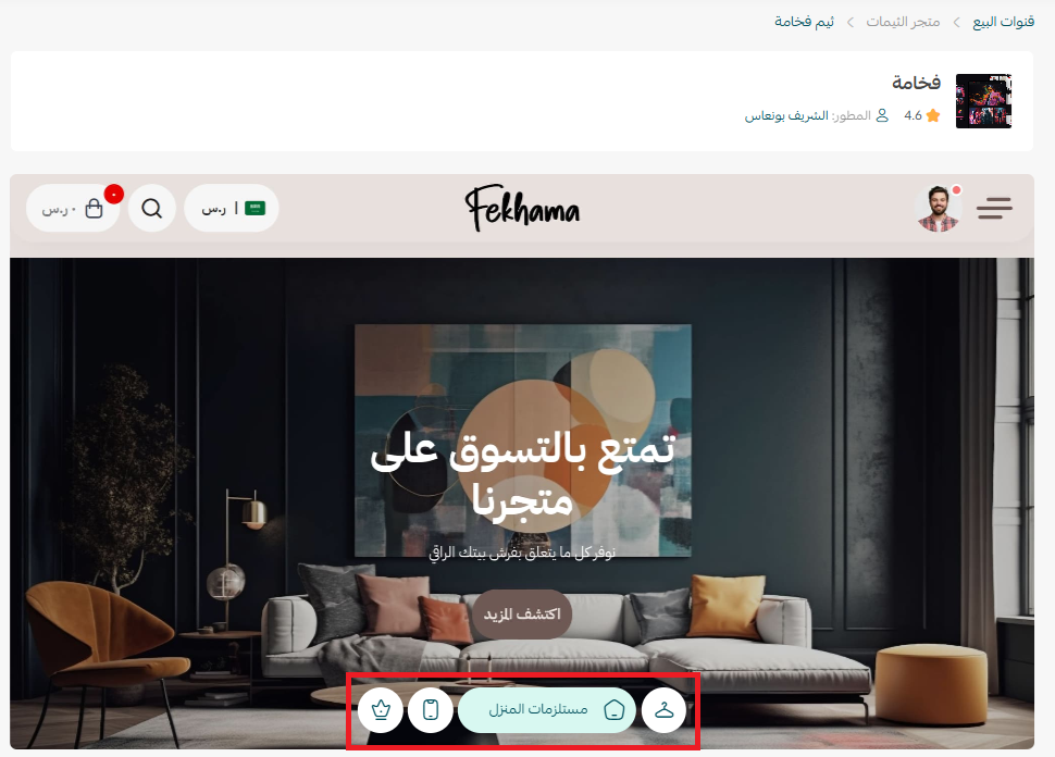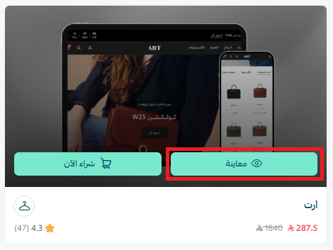 من صفحة متجر الثيمات، شاهد كيف سيبدو متجرك بهذا الثيم، بضغط (معاينة) أو معاينة قسم معيّن.