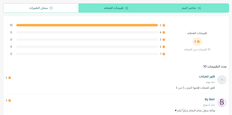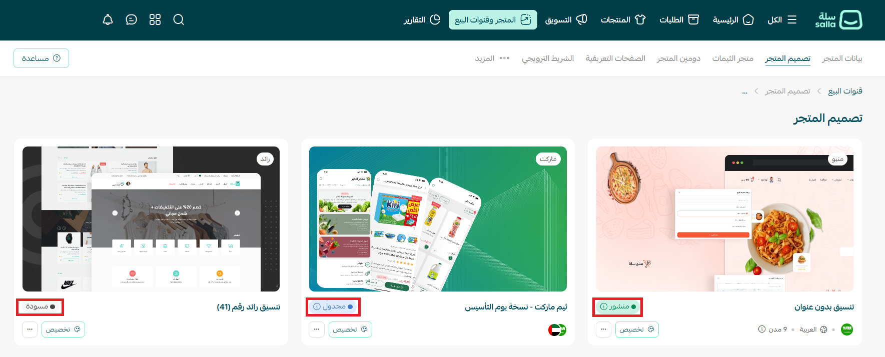لكل ثيم في المتجر تفاصيله الخاصة التي تساعد التاجر على التعرف على حالته وإدارته بسهولة، وتشمل: