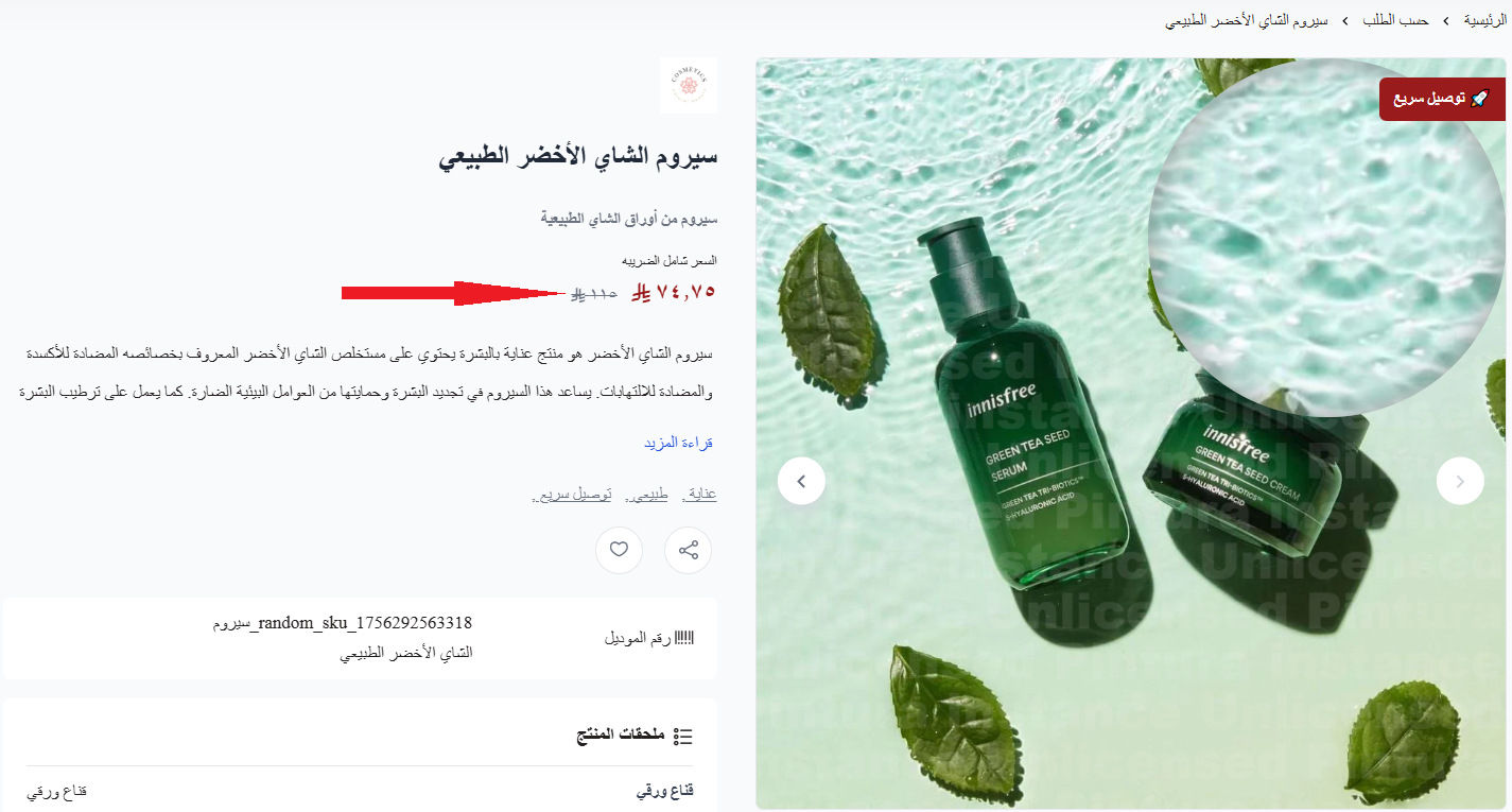 ويمكن أن يظهر التخفيض على المنتج بالشكل: