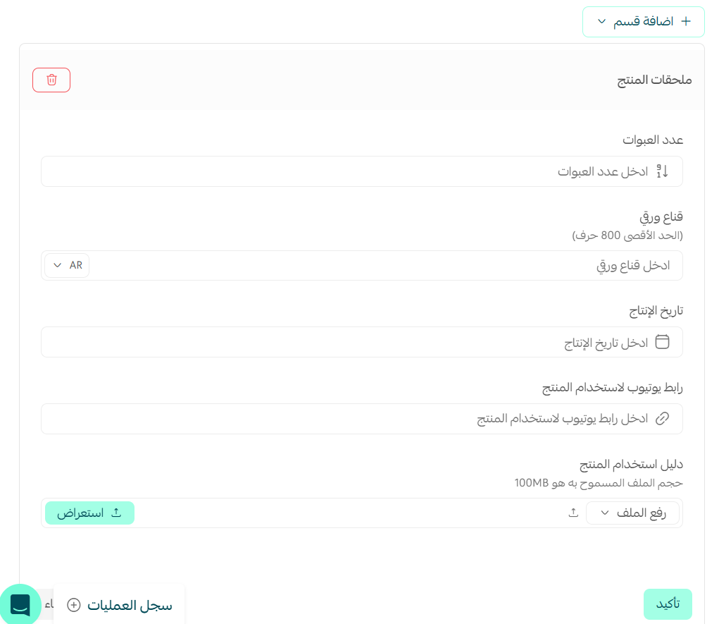 أضف أحد الحقول المخصصة التي سبق لك إعدادها، وبعد مراجعتك لملائمة الحقل المخصص لطبيعة المنتج، اضغط (تأكيد).
