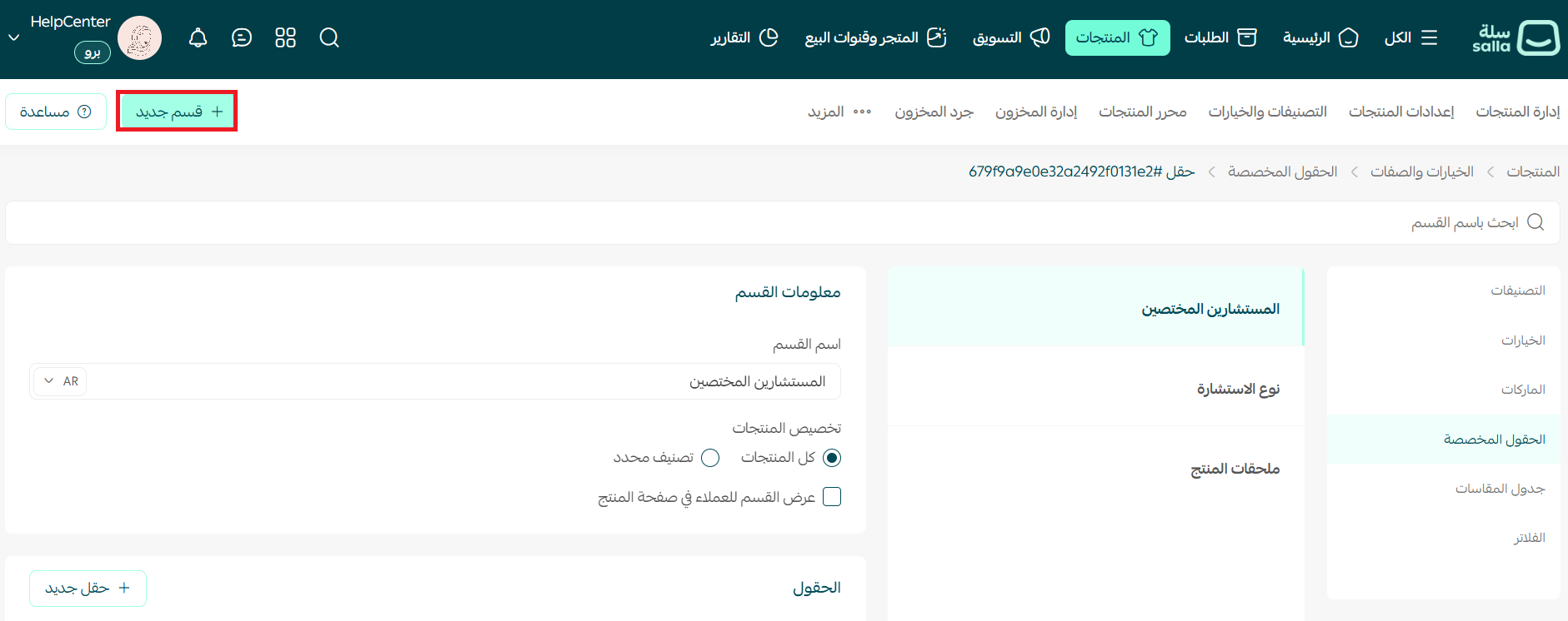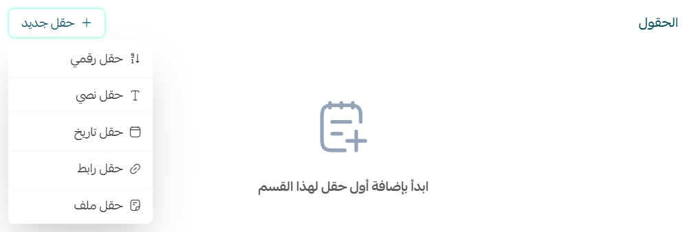 1. من صفحة الحقول المخصصة، اضغط (إضافة قسم جديد).