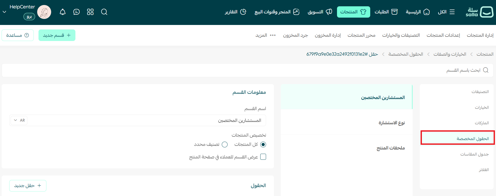 لذلك المنتجات التي ترغب بدعم حقول مخصصة لها للعميل احرص على إظهارها في المتجر فقط.