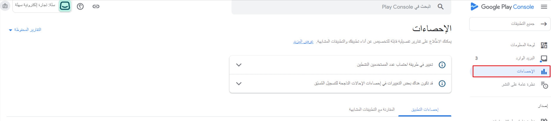يمكنك عبر تبويب إحصاءات التطبيق الاطلاع على بيانات الأداء مثل التثبيتات والتقييمات والأرباح والأعطال، ومقارنة نتائجك مع التطبيقات المشابهة لاتخاذ قرارات أفضل.