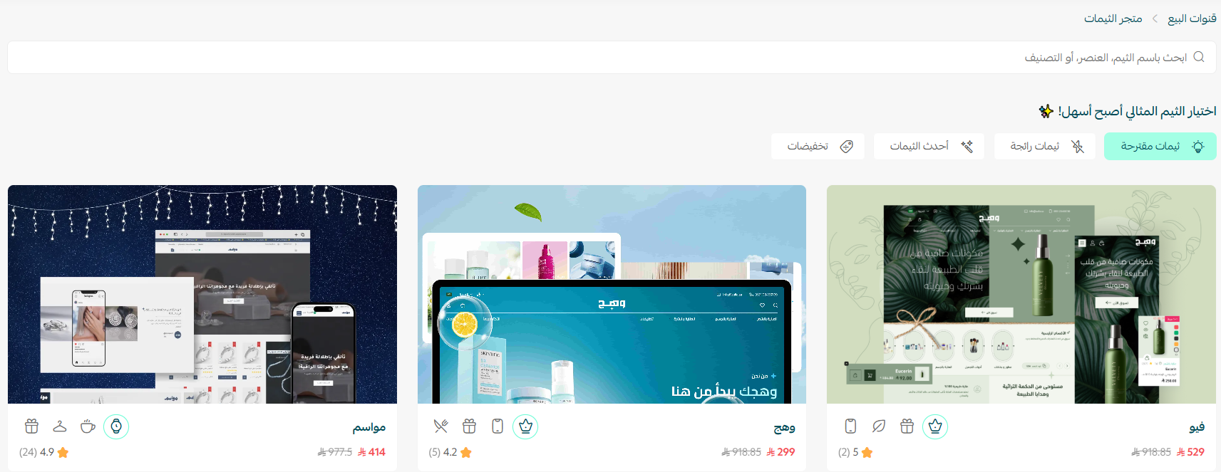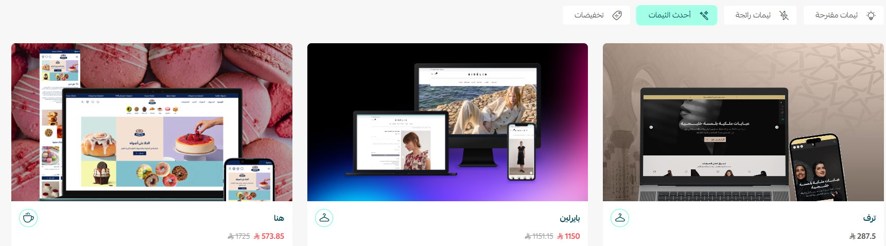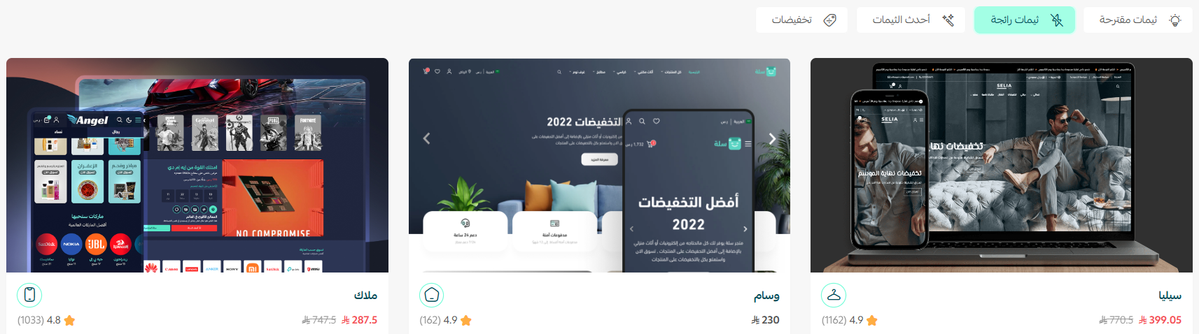 2. عرض أحدث الثيمات المدفوعة و ثيمات شركاء سلة.