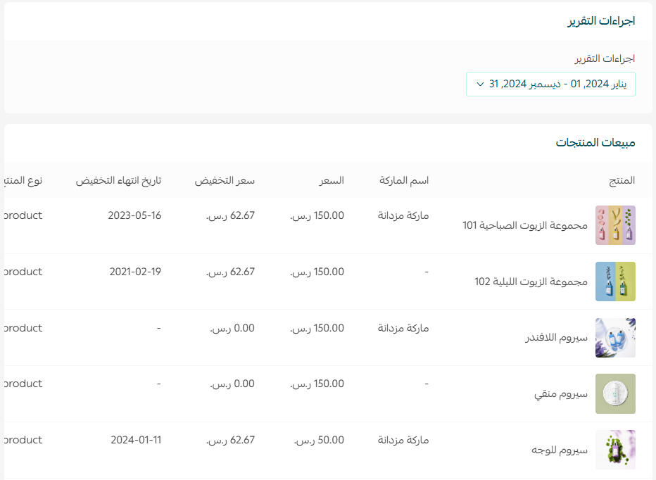 سيظهر تقرير مبيعات المنتجات بالشكل التالي: