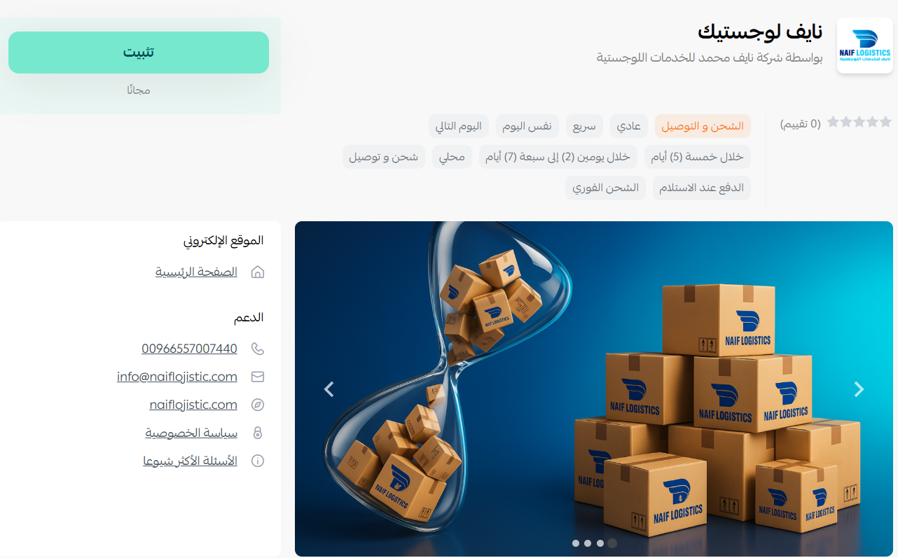 لمزيد من التفاصيل حول نوع الخدمات والأسعار ونطاق التوصيل لتطبيق نايف لوجيستك