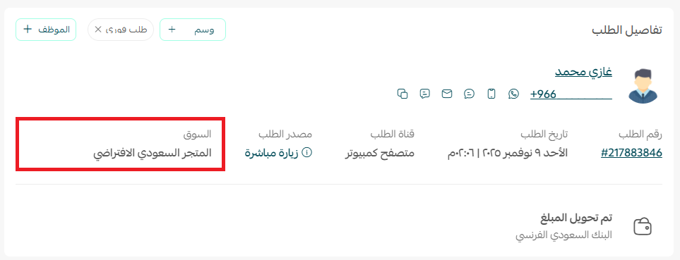🔔 في حال تفعيلك لميزة الأسواق المتعددة، سيظهر في صفحة تفاصيل الطلب مصدر الطلب من أي سوق.