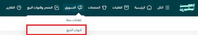 1. من صفحة إعلانات سلة، اضغط تبويب (أدوات التتبع).