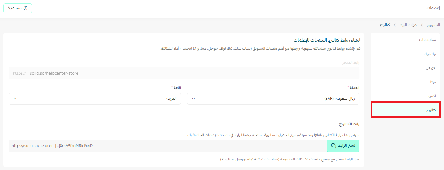 🔔 هذا الرابط صالح للربط مع كتالوجات جميع منصات التواصل وليس لميتا فقط.