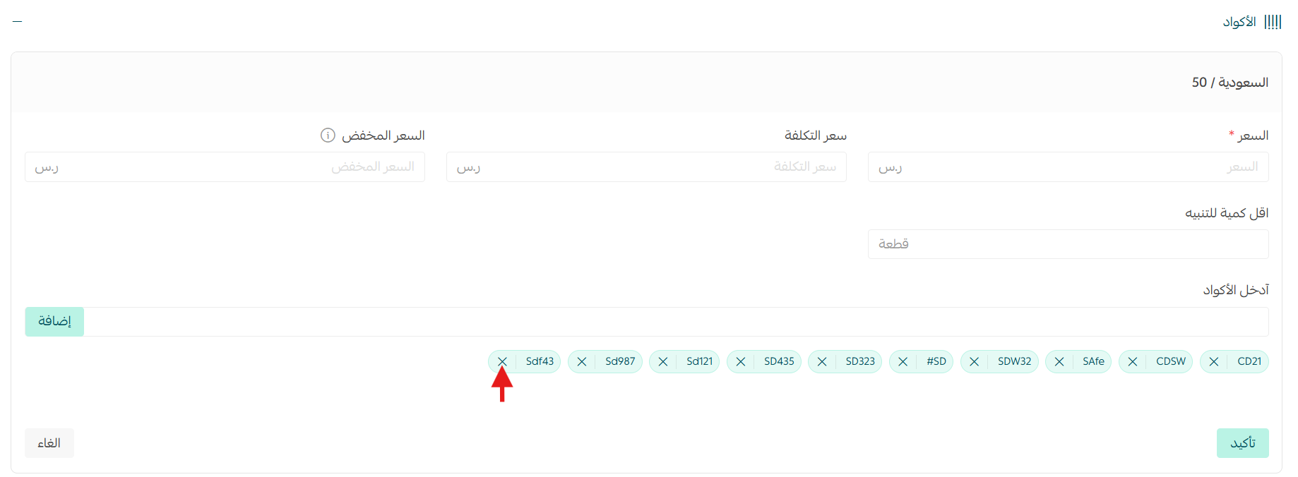 اضغط (تعديل الأكواد) ثم أضِف الأكواد يدوياً واضغط (حفظ).