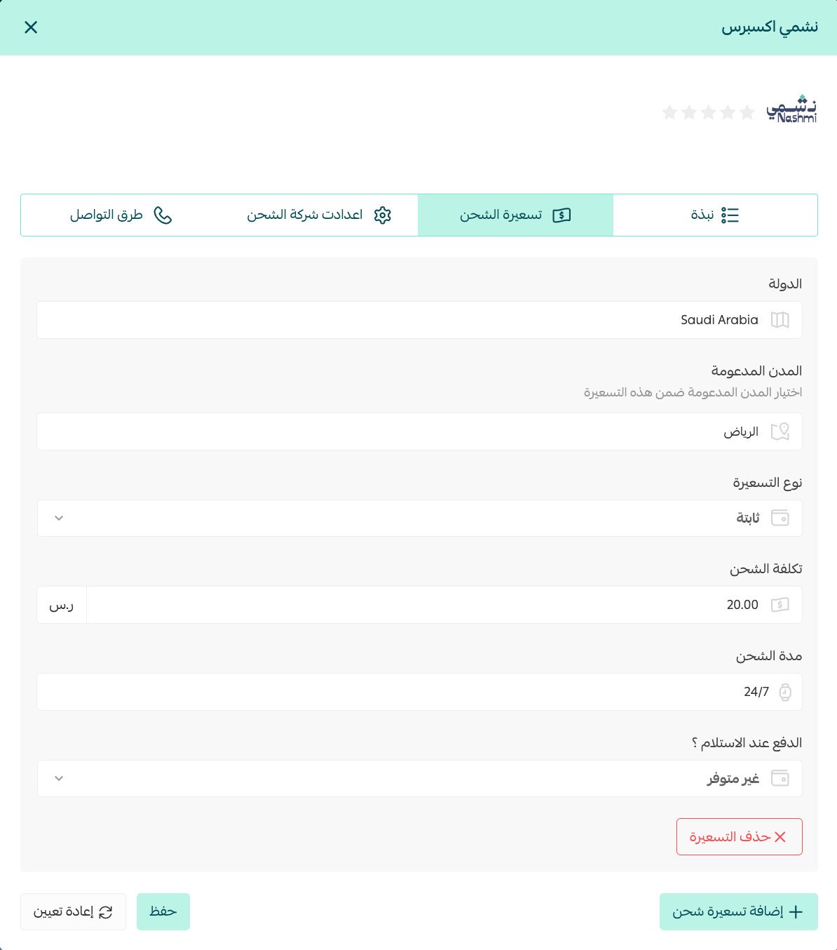 كيف يمكنني إعداد تسعيرة الشحن على تطبيق نشمي اكسبرس ؟
