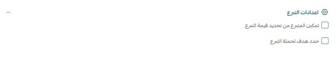 أضِف خيارات للتبرع بالضغط (+إضافة خيار تبرع) وإضافة قيمة التبرع.