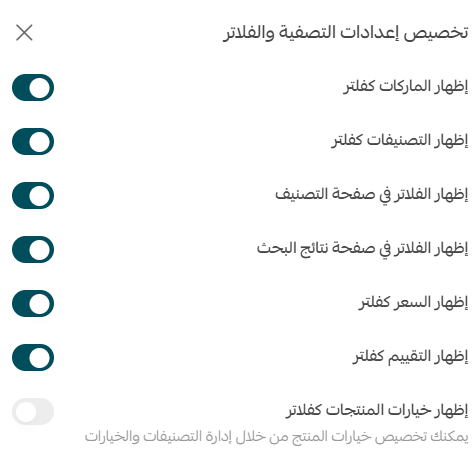 3- إظهار الفلاتر في صفحة التصنيف: تحديد إذا ما كانت الفلاتر تظهر في صفحة التصنيفات.