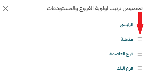 اسحب الفرع أو المستودع باستخدام أيقونة الثلاث خطوط، ثم اضغط (حفظ) لتطبيق الترتيب.