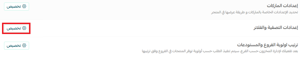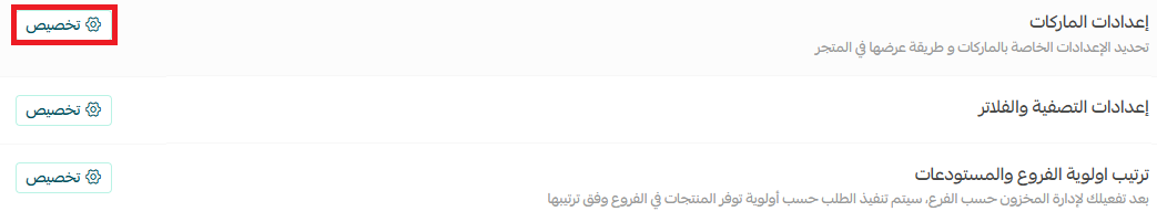 يمكنك تحديد الإعدادات الخاصة بالماركات وطريقة عرضها في المتجر، من خلال الضغط على (تخصيص).
