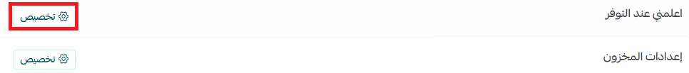 يمكنك التحكم في خاصية (اعلمني عند التوفر) من خلال الضغط على زر (تخصيص).