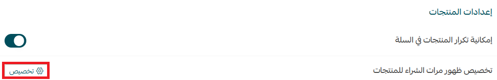 يمكنك التحكم في طريقة عرض عدد مرات شراء المنتجات من خلال الضغط على زر (تخصيص).
