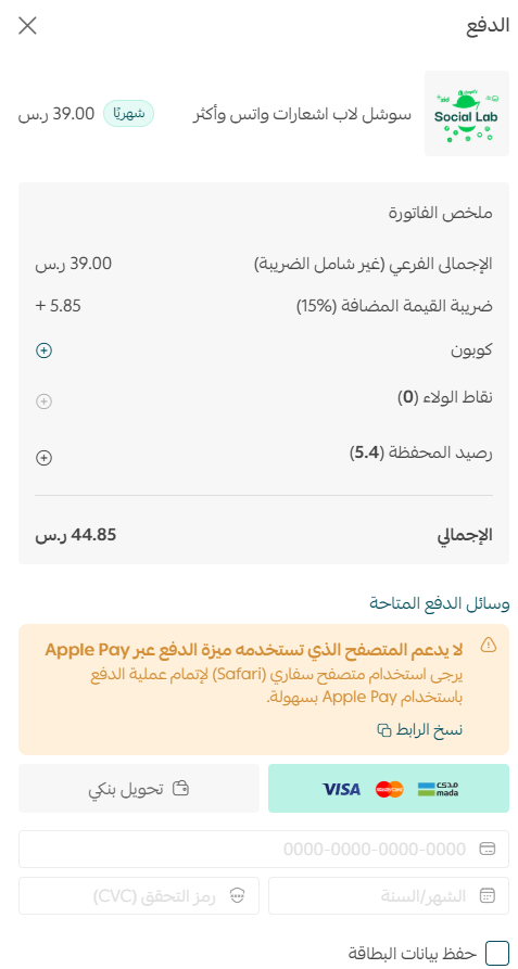 - اكمل عملية الدفع للاستفادة من مميزات التطبيق بنجاح.