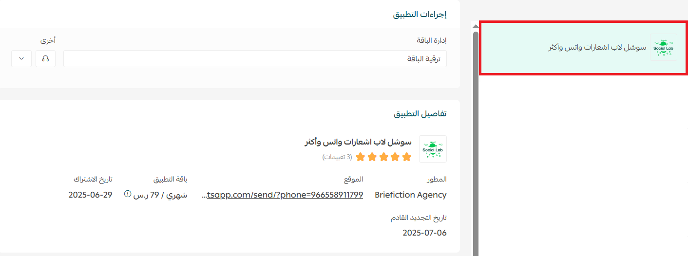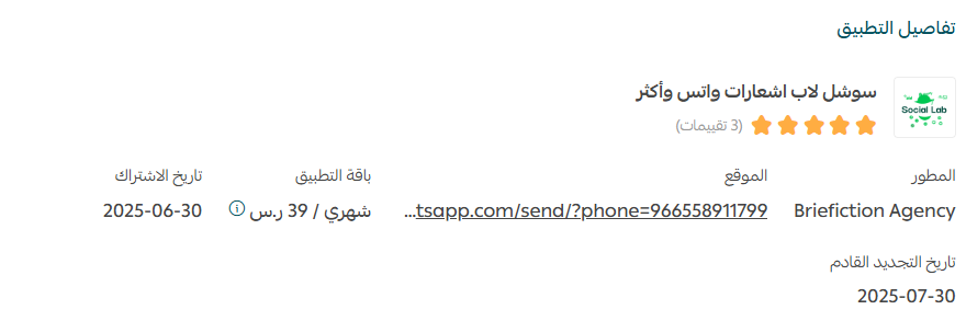 اكتمل بهذا تفعيل تطبيق سوشل لاب اشعارات واتس وأكثر على متجرك.