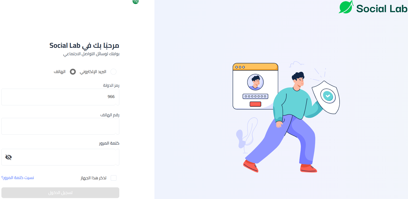 2. تسجيل الدخول إلى موقع سوشل لاب اشعارات واتس وأكثر