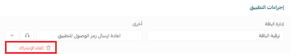 من قسم إجراءات التطبيق، اضغط () ثم اضغط (الغاء الإشتراك).