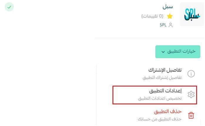 2. من صفحة التطبيقات المثبتة، ومن تطبيق سبل اضغط (خيارات التطبيق) ثم (إعدادات التطبيق).