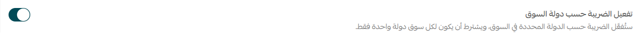 ستُفعَّل الضريبة حسب الدولة المحددة في السوق، ويشترط أن يكون لكل سوق دولة واحدة فقط.
