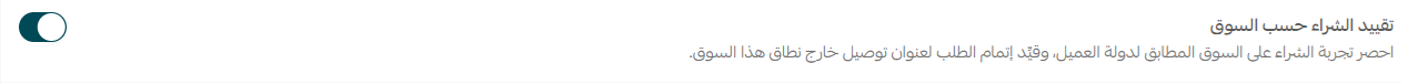 احصر تجربة الشراء على السوق المطابق لدولة العميل، وقيِّد إتمام الطلب لعنوان توصيل خارج نطاق هذا السوق.