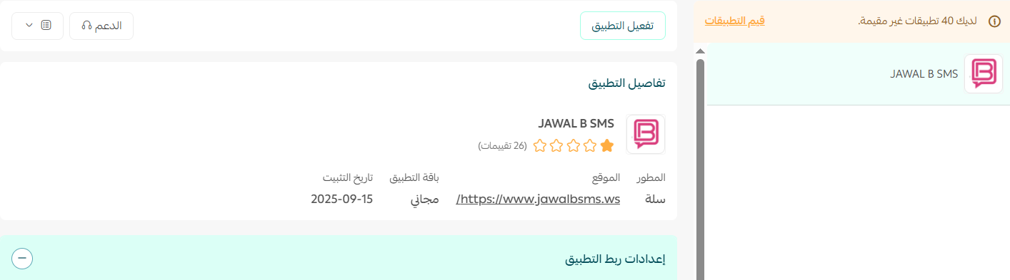 اكتمل بهذا تثبيت تطبيق jawal SMS على متجرك.