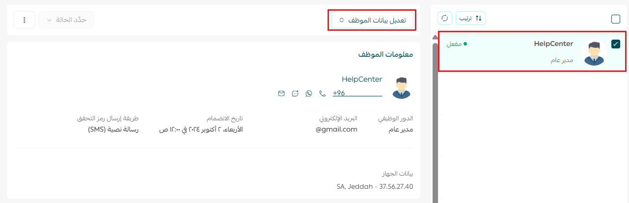 اضغط تعديل بيانات الموظف.