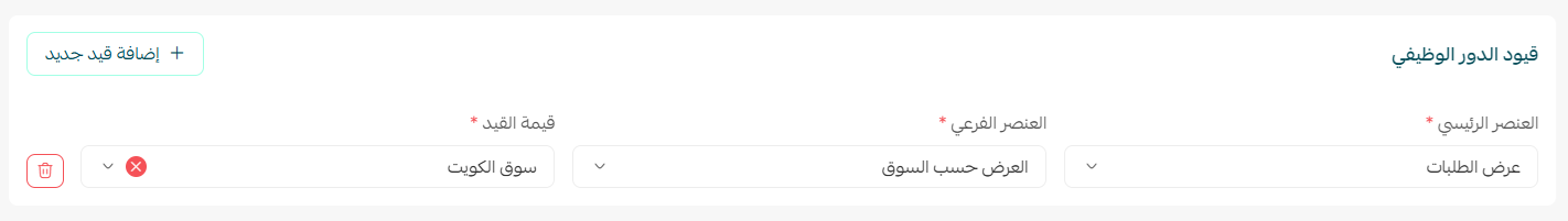 إن رغبت بإضافة قيد مخصص للدور الوظيفي اضغط (إضافة قيد).