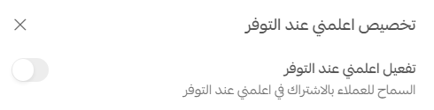 3. يمكنك التحكم في خاصية (اعلمني عند التوفر) من خلال الضغط على زر (تخصيص).
