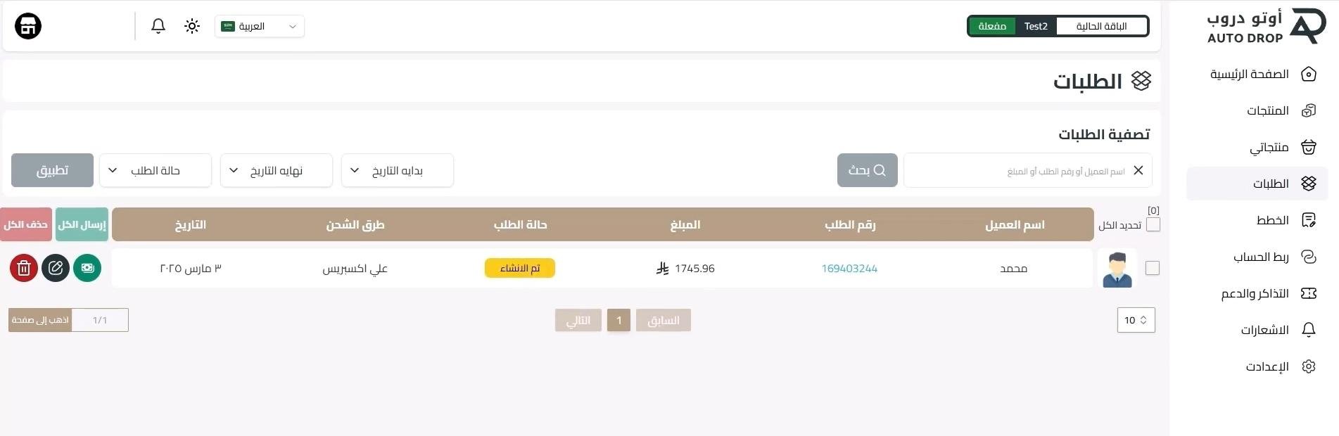 بعد أن يتم العميل الطلب من متجرك في سلة، يُرسل تلقائياً إلى أوتو دروب خلال دقائق.