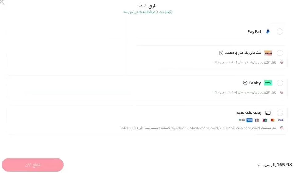 5. اختر الطريقة المناسبة للسداد، بعد اتمام السداد ستظهر تفاصيل الشحن وموعد التسليم تلقائياً.