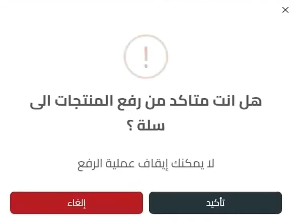 5. اضغط تأكيد، لإتمام رفع المنتجات الى سلة.