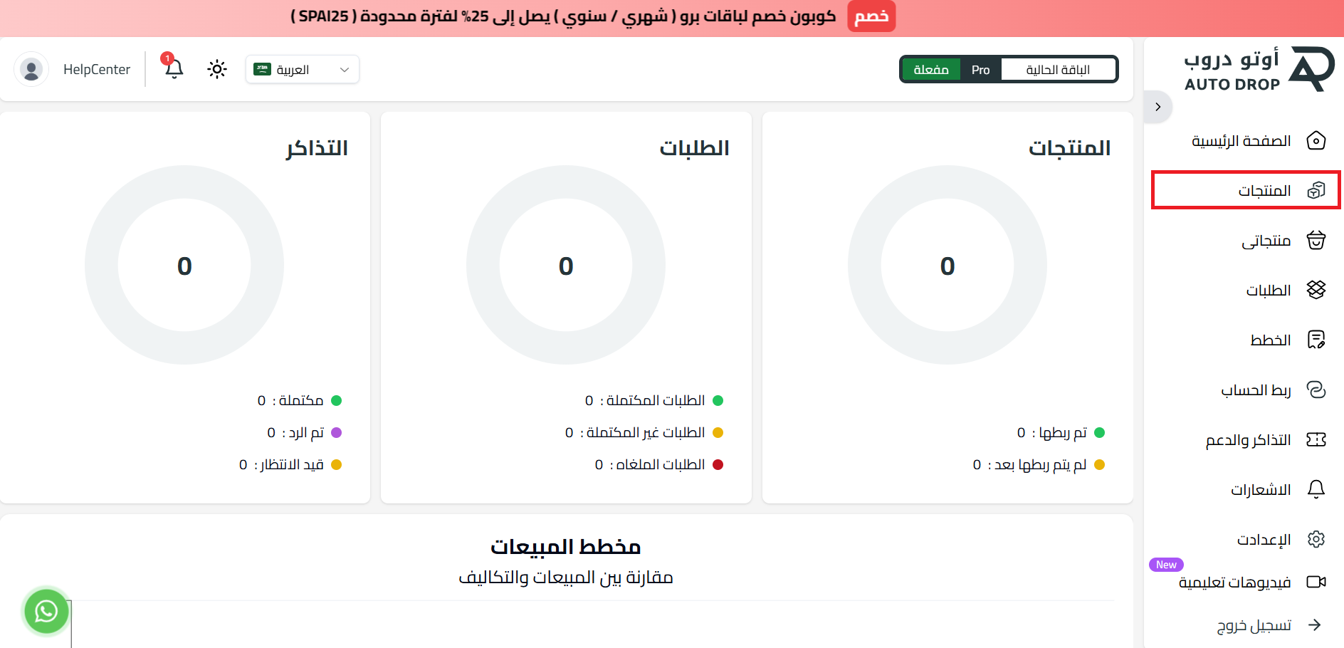 1. من القائمة الرئيسية في أوتو دروب، اختر (منتجاتي)