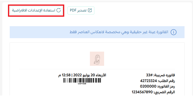 ❓ هل يمكنني استعادة الإعدادات الافتراضية للفاتورة؟