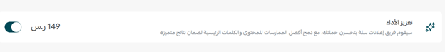 📝 ملاحظة هامة: عند تفعيل خيار (تعزيز الأداء) سيقوم فريق إعلانات سلة بتحسين حملتك، مع دمج أفضل الممارسات للمحتوى لضمان نتائج أفضل.